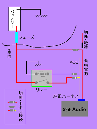 オーディオ配線(バッテリー直)施工 (施工日:忘れた。 掲載日:2004.05.31)