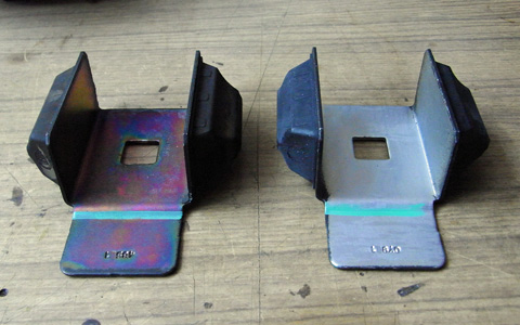 マウント上部、エンジン側のブラケット(兼タイミングベルトカバー)との接合部分のパーツです。 このパーツもメッキのタイプが変更されていますね。 やっぱり六価クロムを使うメッキ方法は排除されていってるようですね。 現行のメッキは、三価クロムなのかしら? 詳しくはわかりません。 (偉い人おしえて〜〜♪) |