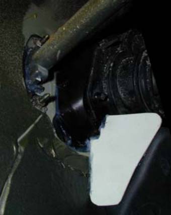 これは作業完了後のホイールハウス裏側の写真で、右下の白いプラ板は以前の作業で取り付けた泥よけです。 左上から右上に向いて伸びている棒状のものが蓋の固定スプリングが入っている部分で、その上下に2個の8mm頭ナットで蓋ユニット?は固定されています。これを一度外してボディとの接合面に(ボルト穴にも)薄くシリコンを塗り、目止めをしてから再度取り付けます。 加えて燃料注ぎ口?の基部とボディの接合面にも隙間があるためそこにもシリコンをうっています。 うっすら白くはみ出ているのがそれです。 シリコンは乾燥してからも柔らかいので振動などで割れたり剥れたりしにくいのが利点です。こういう場所での接着剤的使い方に向いています。 |