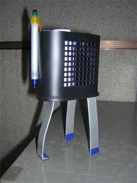 これはいったいなんじゃらほい? 答えはサイドブレーキ後に設置する小物入れでございます。 上の黒い本体は100円ショップで発見したMade in Japanの高級卓上小物入れでございます。(笑) それにアルミステーを曲げ曲げした足をビス&ナットで取り付けたモノなのであります。 足の下端にはマジックテープを貼り付けてカーペットに固定するっという段取りになっております。 なぜこんなに足が長いのかと申しますとサイドブレーキレバーを引き上げた時に干渉しないギリギリの高さを確保するためでござる。 干渉を避けるために後ろのほうへずらしていくと運転中に簡単に手が届かないくらい後ろの方へ設置しなければなりませぬ。また後席乗員の邪魔にもなります。 ちょうどいい場所に設置するために計算されつくした足の長さなのでありますぅ。うしし。 |