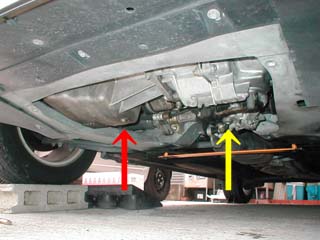 まずはミッションオイルを抜きます♪ アンダーガードを外したらエンジンオイル交換と同様、ミッションオイル用のドレンボルトを緩めて排出します 。 黄色矢印の位置にあるのがそれです。 写真下はクローズアップしたもの。 (写真上の赤矢印はエンジンオイル用。間違えてはいけません。) 緩めるためには8mmスクエア(8ミリ四角)の専用工具を使います。エンジンオイルのドレンプラグ用と同じものです。 排出が終わったらドレンボルトを元通り装着します。 ドレンパッキンの交換必要。 |