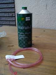 サイフォンの原理でタンク内のフルーイドを排出するのですが、そのためにホースの途中まで液を吸い上げます。 オイル交換用ポンプがあればそれで吸い出したほうが早いですし安全です。 この作業方法は完全にウケ狙いでやってますのでご了解願います。(笑) 誤って飲み込んだり、体調が変になっても当方は一切責任を負えません。 |