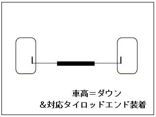 この様にしてやれば、走行中のサスペンションの動きに対するアライメント変化はオリジナル車高の時と同様のものとなります。