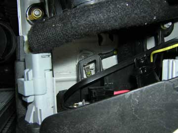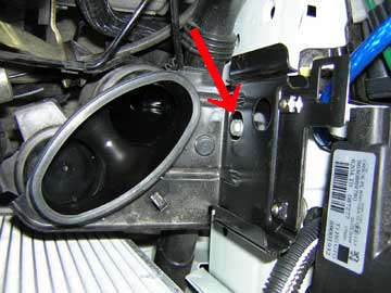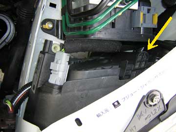 「4灯式車両でライトを外さずキットを装着する方法」 以下で説明しているようにランプ裏のカバー類などを取り外すことで、右の2灯式車両の赤矢印ボルトを緩めて脱着することが可能。 ↓↓4灯式ヘッドライト車両 ![]() ↑黄色矢印のレバーを起こしてランプ裏カバーを外す。 ![]() ↑カバーを外した状態の画像です。カバーの「受け側」の影にアースポイントが見えます。 ![]() ↑アースポイントを真横から見た図です。この部分に元々使われていたボルトは長さがけっこう長いので取り外すためには途中からスパナ(オープンエンド)を使う必要があります。メガネレンチなどでは上のランプ裏カバーの下に当たって工具が外れなくなりますので。 ![]() ↑写真は206RCです。エアクリーナーボックス保持用のステーが邪魔な場合は赤矢印で示したボルトを取り外しこの黒いステーを邪魔にならない位置に動かすか外してアースポイントに工具がアクセスできるようにスペースを稼ぎます。 |