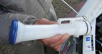 ↓↓2灯式ヘッドライト車両 (この赤矢印ボルトがそのまま上から脱着できます。) ![]() 「車両右側の作業方法」 ![]() ↑ウォッシャータンクの上部パイプ部分を取り外します。 メガネレンチをパイプの一番奥のロックレバーにひっかけてロックを解除して抜き取ります。 ![]() ↑引っ掛ける位置はこの画像の針金で指し示している位置です。 |