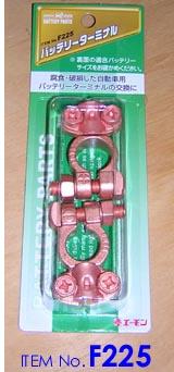 別途市販のターミナルを購入しオリジナルのものと交換します。 量販店で500円程度で販売されています。(サイズを間違えないようにご注意ください。写真の品番参照。) (ケーブル押さえ用のプレートは使用しません。またボルトにはM6サイズのワッシャを装着してから端子を締め付けてください) 写真の様にアース線をいったん切断して約1cm被覆を切り取り、キット付属の圧着端子を付けます。 オリジナルのアース線は長さに余裕がない場合があります。必ず長さを確認してからアース線を切断してください。 Twingoは長さにほとんど余裕がありませんのでカシメ部分をニッパー等で開き、できるだけ長さを確保してから切断してください。 圧着端子はできるだけ幅の狭いウォーターパイププライヤー(100円ショップで販売されているようなものでもOK)などで強力にかしめてください。 圧着する力が足りない時はプライヤーを二重がけにして作業してください。(左下写真参照) サイズの合う圧着工具があればそれを使用してください。 圧着ができたらキット付属の熱収縮チューブをかぶせて圧着部を保護してください。このチューブはライターの炎であぶると収縮して端子に密着します。ただし炎の先端であぶると高温になりすぎてチューブやケーブル被覆が燃えてしまいますので炎の根元であぶってください。 写真下のバッテリーにはオリジナルのターミナル用ねじアダプタが付いたままになっていますが、このタイプのアダプタが装着されている車種の場合はマイナスドライバーなどで丁寧にこじて取り外してください。 もろい材質ですので破損させないように注意。 |