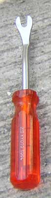 下の写真のような「内装はがし」で左フロントのインナーフェンダー内のスナップピンを取り外します。 ●青い樹脂製はエーモン製で、カー用品店で7〜800円程度で販売されています。 固く刺さっているピンを抜く際はちょっと力不足。でも入手が簡単。^^; ●金属製のものは量販店で購入する場合、樹脂製に比べて多少値がはりますが、作業性ははるかに高いです。 ◆ヒント:「ストレート」などの工具店で買えば金属製も案外安いです。 (クリップリムーバーで検索してみましょう。) ![]() ![]() ![]() <注意=「内装はがし」のサイズについて> 各工具メーカーによって違う場合もありますが、凹部のサイズに大小があり、対象の軸径が約9mmまで用(大) と 約6mmまで用(小)などのサイズ分けで販売されています。 スナップピンの径は8mm程度ありますのでご購入の際は(大)サイズの物をお選びください。 |